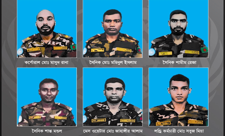 دانت القوات المسلحة البنغلاديشية مقتل 6 من جنودها العاملين ضمن قوات حفظ السلام، في هجوم بطائرة مسيرة على قاعدة كادوقلي اللوجستية التابعة لبعثة الأمم المتحدة في أبيي بالسودان، وقد تبادل الجيش السوداني وقوات الدعم السريع الاتهامات بشأن المسؤولية عن الهجوم الذي وصفته بنغلاديش بالارهابي وأدانته الأمم المتحدة.