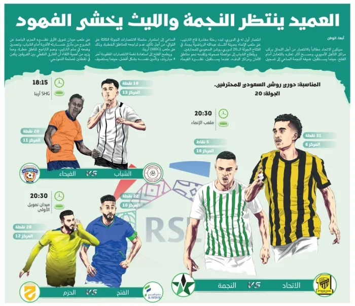 سيكون الاتحاد مطالباً بالانتصار من أجل اللحاق بركب مراكز التأهل الآسيوي، ومسح آثار تعثره بالتعادل أمام الفتح، حينما يستقبل، ضيفه النجمة الساعي إلى تسجيل انتصار أول له في الدوري، لبدء رحلة مغادرة قاع الترتيب، على ملعب الإنماء بمدينة الملك عبدالله الرياضية بجدة، في افتتاح الجولة الـ20 لدوري روشن السعودي للمحترفين.