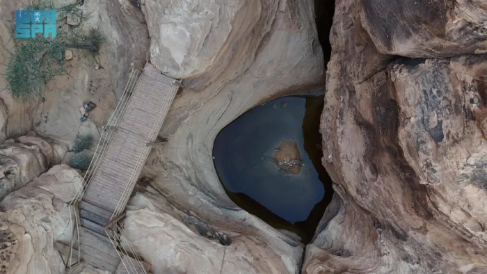 تُعد التجاويف الصخرية المنتشرة في مواقع متفرقة من العُلا من الظواهر الطبيعية التي أسهمت في حفظ مياه الأمطار لفترات طويلة، بفضل تكوينها الجيولوجي وقدرتها على تجميع المياه داخل تجاويف صخرية طبيعية.