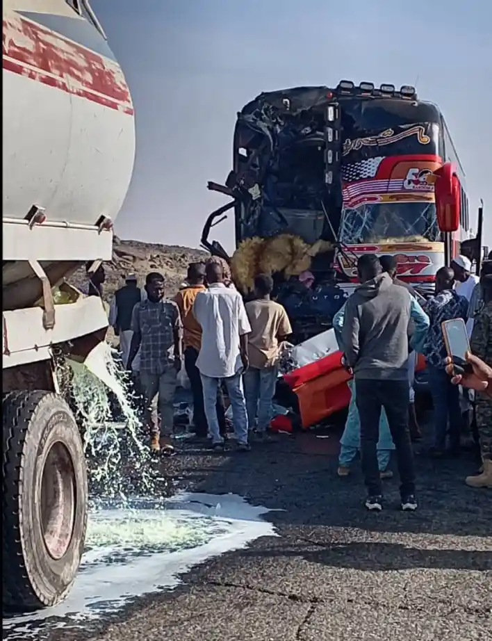 صباح اليوم الإثنين ،،حادث مروري بطريق بورتسودان، ما بين سنكات وهيا ، بص سياحي قادم من بورتسودان يصطدم بتنكر وقود من الخلف !!