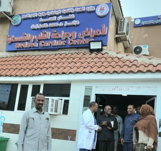 لدي زيارته لمركز د.محمد طاهر ايلا لأمراض وجراحة القلب والقسطرة بولاية البحر الاحمر بحضور وزير الصحة بولاية البحر الأحمر د.أحلام عبدالرسول، ورئيس المجلس الاستشاري لأمراض القلب بوزارة الصحة الاتحادية، ورئيس قسم القسطرة بمركز ايلا بروفيسور يس محمد عبدالحي