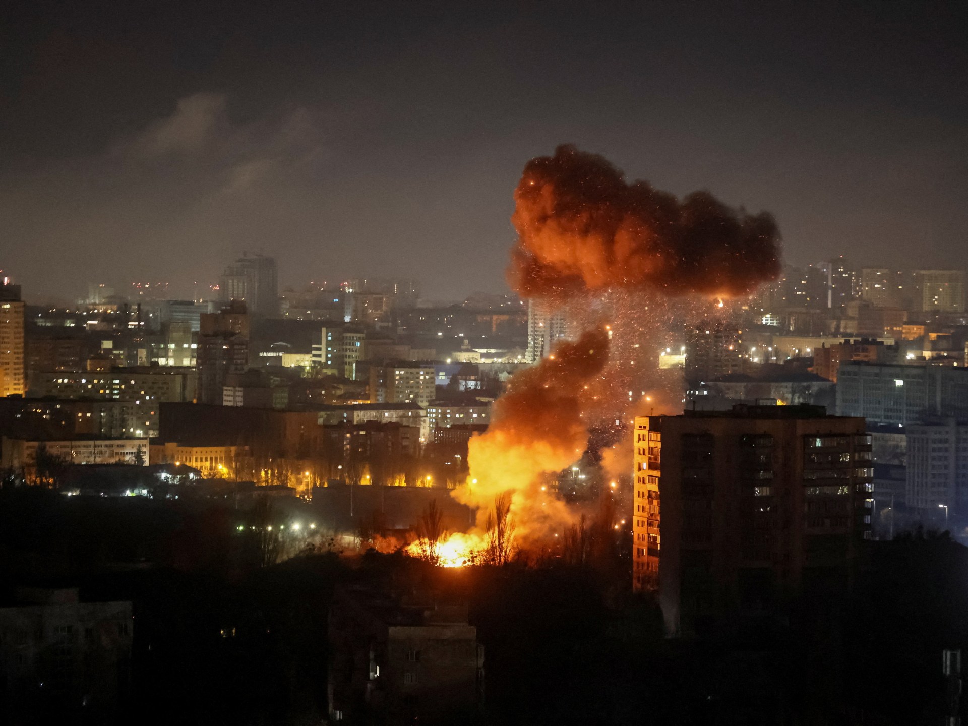 وقال مسؤولون إن الحطام المتساقط والحرائق ألحقت أضرارا بمبان سكنية شاهقة ومدرسة ومنشأة طبية ومبان إدارية في مناطق بأنحاء المدينة التي يبلغ عدد سكانها نحو 3 ملايين نسمة.