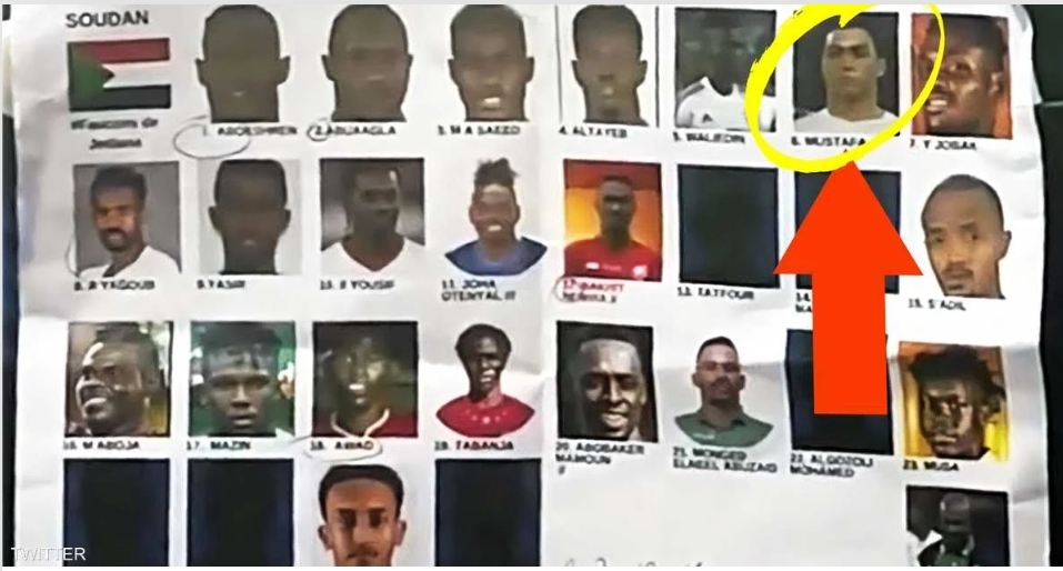 فقد رصدت الكاميرات ورقة أمام المصور المسؤول عن نقل اللقاء، تحتوي على أسماء وصور لاعبي المنتخب السوداني لمساعدته في التعرف عليهم أثناء التصوير. غير أن المفاجأة كانت ظهور صورة النجم المصري مصطفى محمد، مهاجم منتخب مصر ونادي نانت الفرنسي، ضمن القائمة، رغم عدم ارتباطه بالمباراة.